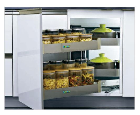 nearly floating all the way out of th corner cabibet in a dynamically curved movement.